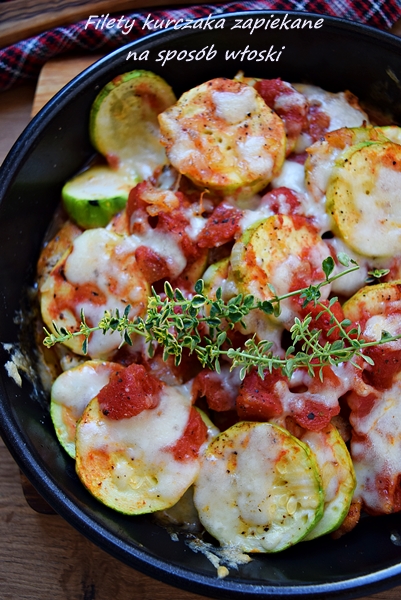 Lekki i pożywny obiad w stylu włoskim, filety zapiekane z dojrzałymi na słońcu warzywami i serem mozzarella. Potrawę możesz podać z ryżem lub z chrupiącą bagietką. Potrawa dla fanów cukinii i pomidorów, włoskich przypraw i nieskomplikowanych dań prosto z piekarnika 🙂