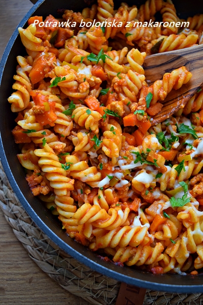 Winny sos mięsno – pomidorowy z warzywami, który w połączeniu z makaronem, tworzy znakomitą potrawkę w stylu bolońskim. Potrawa treściwa i sycąca, na następny dzień, kiedy smaki dobrze się połączą smakuje jeszcze lepiej. Do potrawki bolońskiej, wybierz makaron razowy lub makaron z semoliny, który nie skleja i nie rozgotowuje się, oraz dobrze absorbuje sosy 🙂